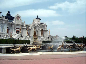 快(kuài)樂(yuè)假期-橫店(diàn)影(yǐng)視(shì)城(chéng)之旅橫店(diàn)影(yǐng)視(shì)城(chéng),是(shì)集影(yǐng)視(shì)、旅遊、度假、休閑、觀光(guāng)為(wèi)₩一(yī)體(tǐ)的(de)大(dà)型綜合性旅遊區(qū),以其厚重的(de)文(wén)化(huà)底蘊和(hé)獨特的(de)曆史場(chǎn™g)景而被評為(wèi)國(guó)家(jiā)AAAAA級旅遊景區(qū)。1996年(nián),為(wèi)配合著名導♣演謝(xiè)晉拍(pāi)攝曆史巨片《鴉片戰争》而建,并對(duì)社會(huì)正式開(kāi)放(fàng)。 橫店(diàn)影(yǐng)視(shì)城(chéng)位于浙江省金(jīn)華市(shì)東(dōng)陽市(£shì)橫店(diàn)鎮,處于江、浙、滬、閩、贛四小(xiǎo)時(shí)交通(tōng)旅遊經濟圈內(nèi)。自(zì)1996年(n$ián)以來(lái),橫店(diàn)集團累計(jì)投入30個(gè)億資金(jīn)興建廣州街(jiē)·香港街(jiē)、明(míng)清宮Ω苑、秦王宮、清明(míng)上(shàng)河(hé)圖、華夏文(wén)化(huà)園、明(míng)清民(mín)居博覽✘城(chéng)、夢幻谷、屏岩洞府、大(dà)智禅寺、紅(hóng)軍長(cháng)征博覽城(chéng)、春秋·唐園、圓明(míng)新園等13個(gè)跨越幾千年(nián)曆史時(s hí)空(kōng)、彙聚南(nán)北(běi)地(dì)域特色的(de)影(yǐng)視(shì)拍(pāi)攝基地(dì)和(hé)兩座超大(dà)型的(de)現(xià₽n)代化(huà)攝影(yǐng)棚。 橫店(diàn)影(yǐng)視(shì)城(chéng)已成為(wèi)全球規模最大(dà)的(de)影(yǐng)視(shì)拍(pāi)攝基地(dì) ,中國(guó)唯一(yī)的(de)“國(guó)家(jiā)級影(yǐng)視(shì)産業(yè)實驗區(qū)”,被美(měi)國(guó)《好(hαǎo)萊塢》雜(zá)志(zhì)稱為(wèi)"中國(guó)好(hǎo)萊塢"。 景區(qū)景點 廣州街(jiē)·香港街(jiē) 廣州街(jiē)景區(qū)建于1996年(nián),是(shì)為(wèi)配合謝(xiè)晉導演拍(pāi)攝曆史巨片《鴉片戰争》而興建的(de),是(shì)橫店(diàn)影(αyǐng)視(shì)城(chéng)的(de)發祥地(dì)。1998年(nián)又(yòu)擴建香港街(jiē),古道(dào)縱橫交錯(cuò),珠江穿城(chéng)€而過,還(hái)原再現(xiàn)了(le)一(yī)個(gè)十九世紀的(de)廣州、香港的(de)街(jiē)市(shì)↓風(fēng)情。廣州、香港在橫店(diàn)相(xiàng)偎相(xiàng)依、接壤而處。廣州街(jiē)美(měi)景簇擁,有(yǒu)藝術(shù)地(dì)重建的(de)“十九世紀南(n'án)粵廣州城(chéng)市(shì)街(jiē)景”;代表“珠江”及“廣州市(shì)內(nèi)小(xiǎo)河(hé)”¶的(de)人(rén)工(gōng)湖(hú)泊;重現(xiàn)當年(nián)的(de)“十三夷館”和(hé)“天字碼頭”等景觀。生(shēng)動形象地(dì)再現(xiàn)了(le)®鴉片戰争前後廣州的(de)市(shì)井風(fēng)貌,是(shì)現(xiàn)代遊客觀賞清代時(shí)期廣州城(chéng)市(shì)社會(h☆uì)街(jiē)景的(de)“風(fēng)俗畫(huà)”。 香港街(jiē)整個(gè)布局利用(yòng)荒野坡地(dì)優勢設計(jì),分(fēn)布著(zhe)皇後大(£dà)道(dào)、香港總督府、維多(duō)利亞兵(bīng)營、彙豐銀(yín)行(xíng)、上(shàng)海(hǎi)公館、和(hé)翰園等十九世紀香港中心城(chéng)區(qū)®的(de)衆多(duō)街(jiē)景。這(zhè)裡(lǐ)30多(duō)座象征英國(guó)殖民(mín)統治的(de)歐式建築,構成了(le)當時(shí)香港政治、經濟、文☆(wén)化(huà)中心的(de)“維多(duō)利亞城(chéng)”。 引人(rén)入勝的(de)景緻吸引許多(duō)新婚燕爾和(hé)™劇(jù)組明(míng)星來(lái)此拍(pāi)攝取景,已有(yǒu)數(shù)百部影(yǐng)片在這(zhè)↓裡(lǐ)獨立制(zhì)作(zuò)完成,獨特的(de)文(wén)化(huà)旅遊更是(shì)讓遊客奔向走告、紛至踏來(φlái)。 ![]() 明(míng)清宮苑 明(míng)清宮苑景區(qū)集影(yǐng)視(shì)拍(pāi)攝、旅遊觀光(guāng)、節慶典禮等功能(néng)于一(yī)體(tǐ)的(de)特大(dà)景區(qū),始建于1998年(nián),占地(dì)面積150α0畝,是(shì)橫店(diàn)影(yǐng)視(shì)城(chéng)最大(dà)的(de)影(yǐng)視(shì)基地(dì)。明(míng♥)清宮苑是(shì)以“故宮”為(wèi)模闆1:1複制(zhì),參照(zhào)了(le)明(míng)清時(shí)☆期宮廷建築手法,以影(yǐng)視(shì)城(chéng)特有(yǒu)的(de)營造方式,仿效了(le)唐、宋、÷元等時(shí)期的(de)禮制(zhì),又(yòu)融入了(le)民(mín)國(guó)年(nián)間(jiān)的(£de)建築風(fēng)格,荟萃了(le)京城(chéng)宮殿、皇家(jiā)園林(lín)、王府衙門(mén)、胡同民(mín)宅等四大(dβà)建築系列,真實地(dì)再現(xiàn)了(le)多(duō)個(gè)曆史時(shí)期燕京的(de)官府民(mín)居、街(jiē)市(shì)店(dià≥n)鋪和(hé)宮殿風(fēng)貌。擁有(yǒu)棋盤街(jiē)、承天門(mén)廣場(chǎng)、千步廊、文(wén)武台、金(jī∑n)水(shuǐ)河(hé)、玉帶橋等許多(duō)曆史景觀,金(jīn)碧輝煌的(de)帝王宮殿、渾然天成的(de)花(huā)園湖(hú)泊、富麗(lì)堂皇的(βde)龍阙鳳檐、氣勢恢弘的(de)皇宮廣場(chǎng)。自(zì)明(míng)清宮苑開(kāi)園以來(lái),以文(wén)化(huà)內(nèi)涵吸引著(zhe)來(lái)自(zì)全€國(guó)各和(hé)劇(jù)組。 ![]() ![]() 秦王宮 秦王宮景區(qū)是(shì)1997年(nián)為(wèi)陳凱歌(gē)拍(pāi)攝曆史巨片《荊轲刺秦王》而建,也(yě)是(shì)《英雄》《功夫之王》等大(dà)片的(de)誕生(shēng)地(dì)。設計π(jì)師(shī)們花(huā)費(fèi)了(le)四年(nián)心血設計(jì)出了(le)一(yī)幅宏偉∞的(de)秦王宮藍(lán)圖,而秦王宮景區(qū)仿建的(de)原型就(jiù)是(shì)秦王朝最主要(yào)的(de)宮殿——鹹陽宮。 景區(qū)占地(dì)800畝,以規模巨大(dà)、形體(tǐ)複雜(zá)、布局嚴謹而著稱。有(yǒu)各類宮殿,五步一(yī)樓,十步一(yī)閣。主宮“四海(hǎi)歸一(★y